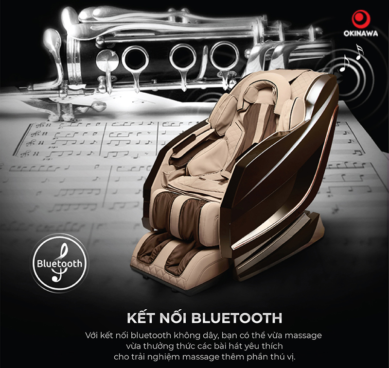 Ngoài ra, bạn có thể dễ dàng kết nối với Bletooth trên điện thoại để vừa massage, vừa thưởng thức những bài nhạc mà mình yêu thích.