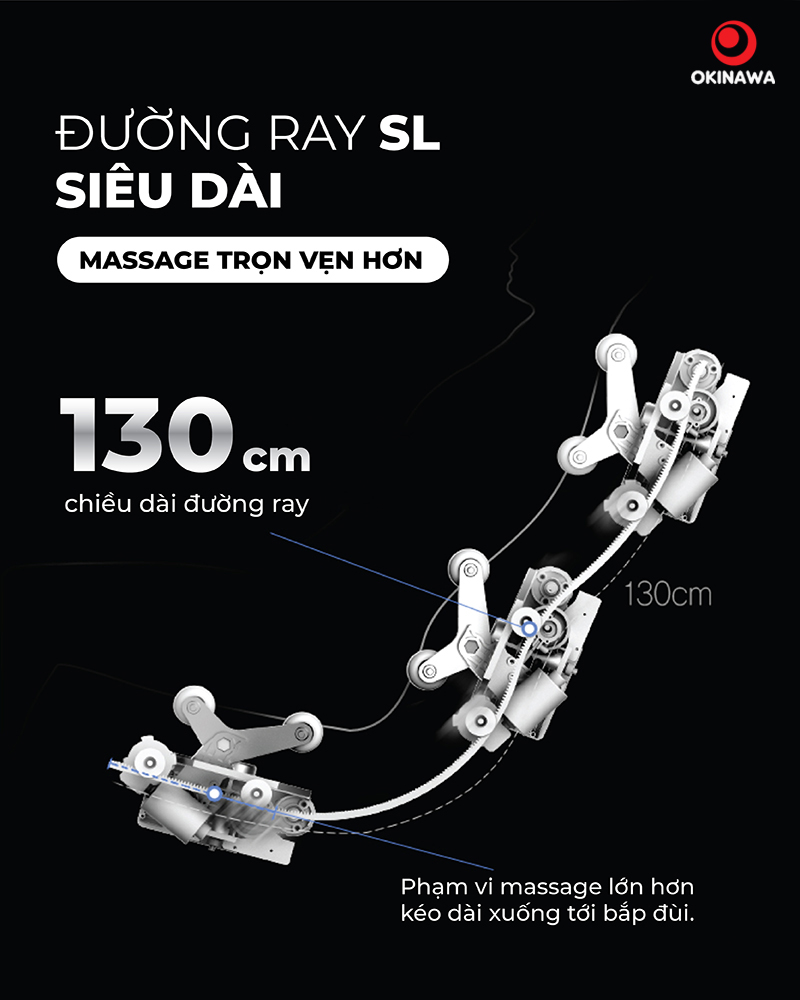 Đường ray SL siêu dài, massage trọn vẹn từ vai xuống bắp đùi
